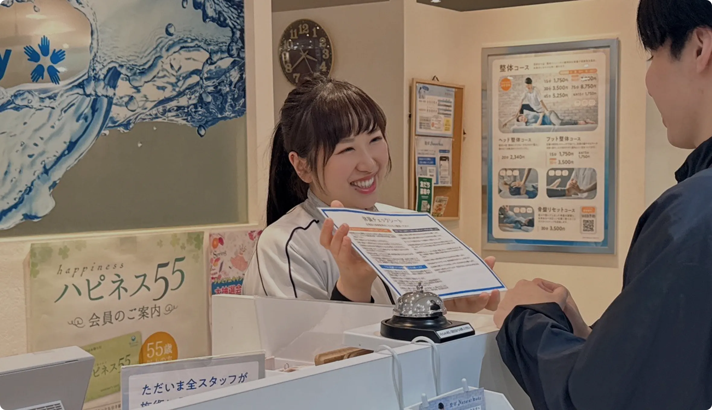 一人ひとり違う身体のお悩みによりそって、感謝されるこの仕事は、ずっとスポーツをやってきて、身体を動かすことが好きな自分にピッタリの仕事だと思っています。